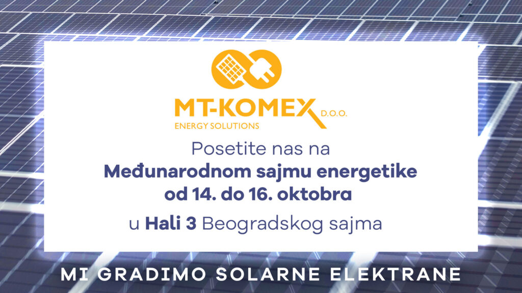 Kompanija MT-KOMEX i ove godine, kao i prethodnih, biće prisutna na Međunarodnom sajmu energetike, kako bi sa posjetiocima podijelila iskustva stečena tokom godina rada, uključujući izgradnju preko 200 solarnih elektrana različitih specifikacija i više od 140 MW instalisane snage, što ukazuje na njen doprinos solarnoj industriji u Srbiji.
